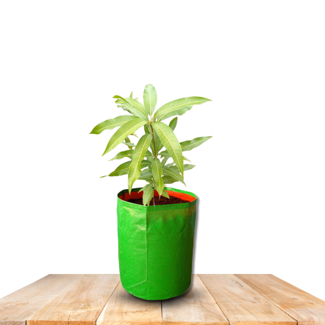 Grow a tropical treasure with Banana Mango saplings, known for their banana-like aroma and fiberless, creamy pulp.